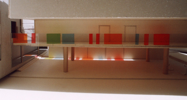 Geländer und Lichtschacht am Mittag, Modellaufnahme